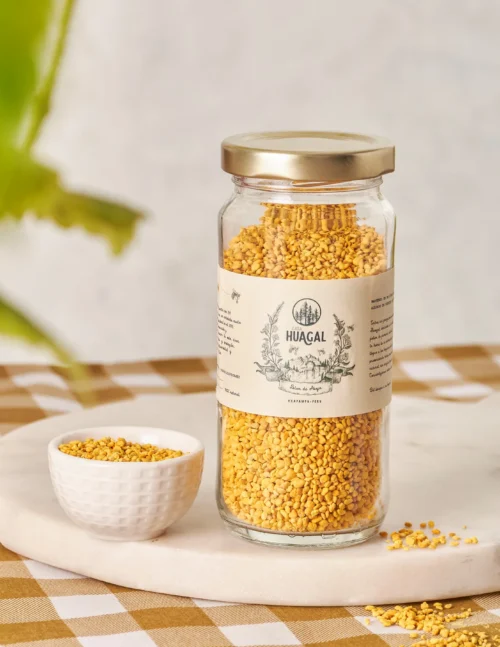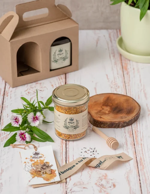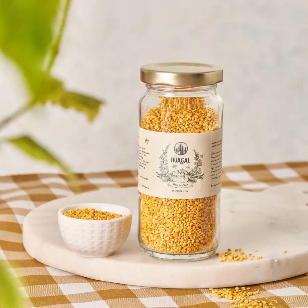 Polen multifloral, alimento proteínico con alto contenido vitamínico y en carbohidratos, principalmente complejo B, vitamina C y minerales. Activa y regula procesos digestivos. Alimento energético, antiedad, estimula el estado de ánimo, mejora la visión y refuerza el sistema inmunológico.