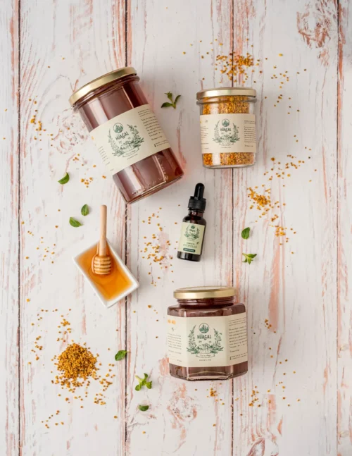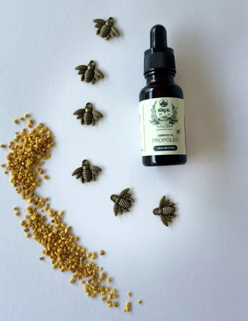 El propoleo es un analgésico y antibiótico natural, compuesto por resinas vegetales. Este se encuentra en los apices de crecimiento de los árboles y plantas medicinales que las abejas recolectan para sellar y reforzar los huecos y el interior de sus colmenas, para protegerla de bacterias, virus y hongos.